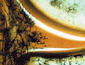 Der Meniskus ist lediglich an der Basis, da, also, wo er an der Kapsel befestigt ist, mit Blutgefäßen versorgt. Das ist in dem anatomischen Präparat zu sehen: Hier wurde schwarze Farbe in die Gefäße gespritzt.