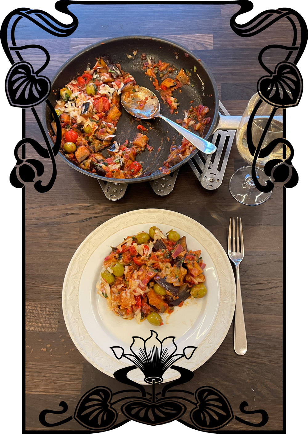 | Auberginen-Tomaten-Ragout mit Kapern |