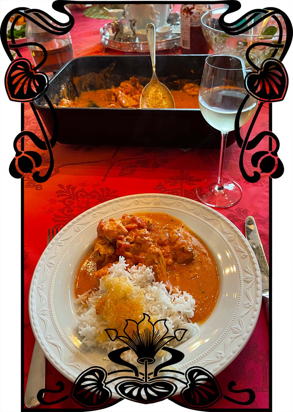 Fleisch in Streifen anbraten und würzen. Tomaten, Knoblauch und Wermut dazu, ca. 20 Minuten köcheln lassen. Dann restliche Zutaten dazu geben, einköcheln lassen und abschmecken@ (Zucker!, Salz und eventuell Cayennepfeffer).