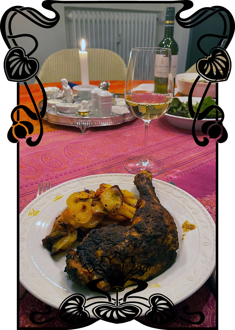 Die Kartoffeln schmecken genauso gut wie das Huhn selbst.