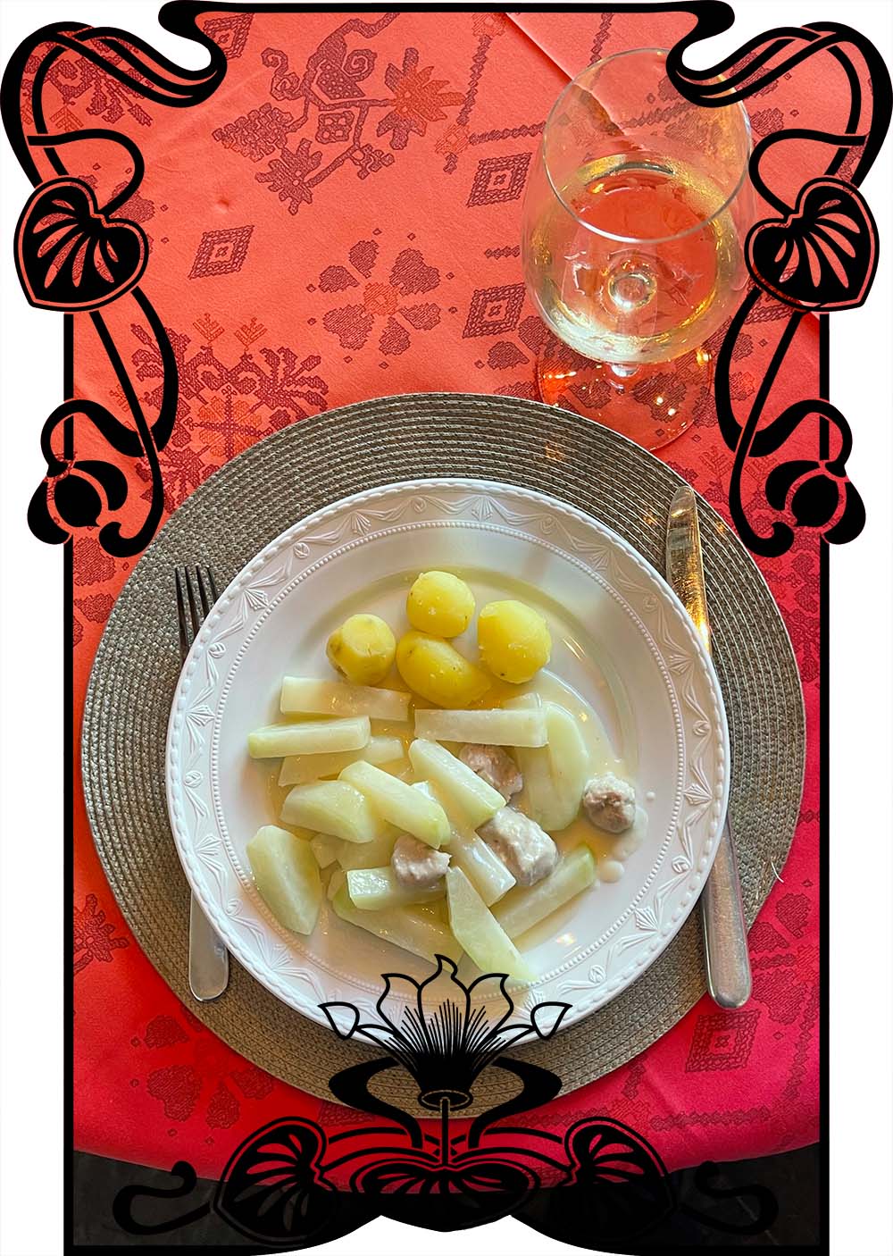 Wenn die Klößchen gar sind, Kohlrabi wieder zugeben, noch einmal abschmecken.