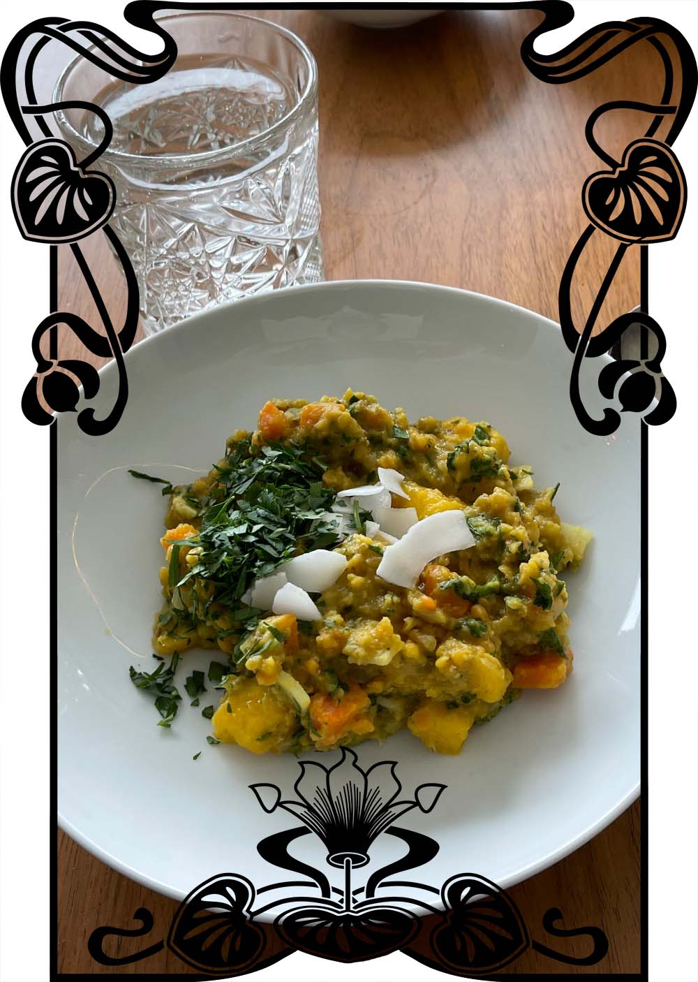 | Linsencurry mit Mango und Kokos |