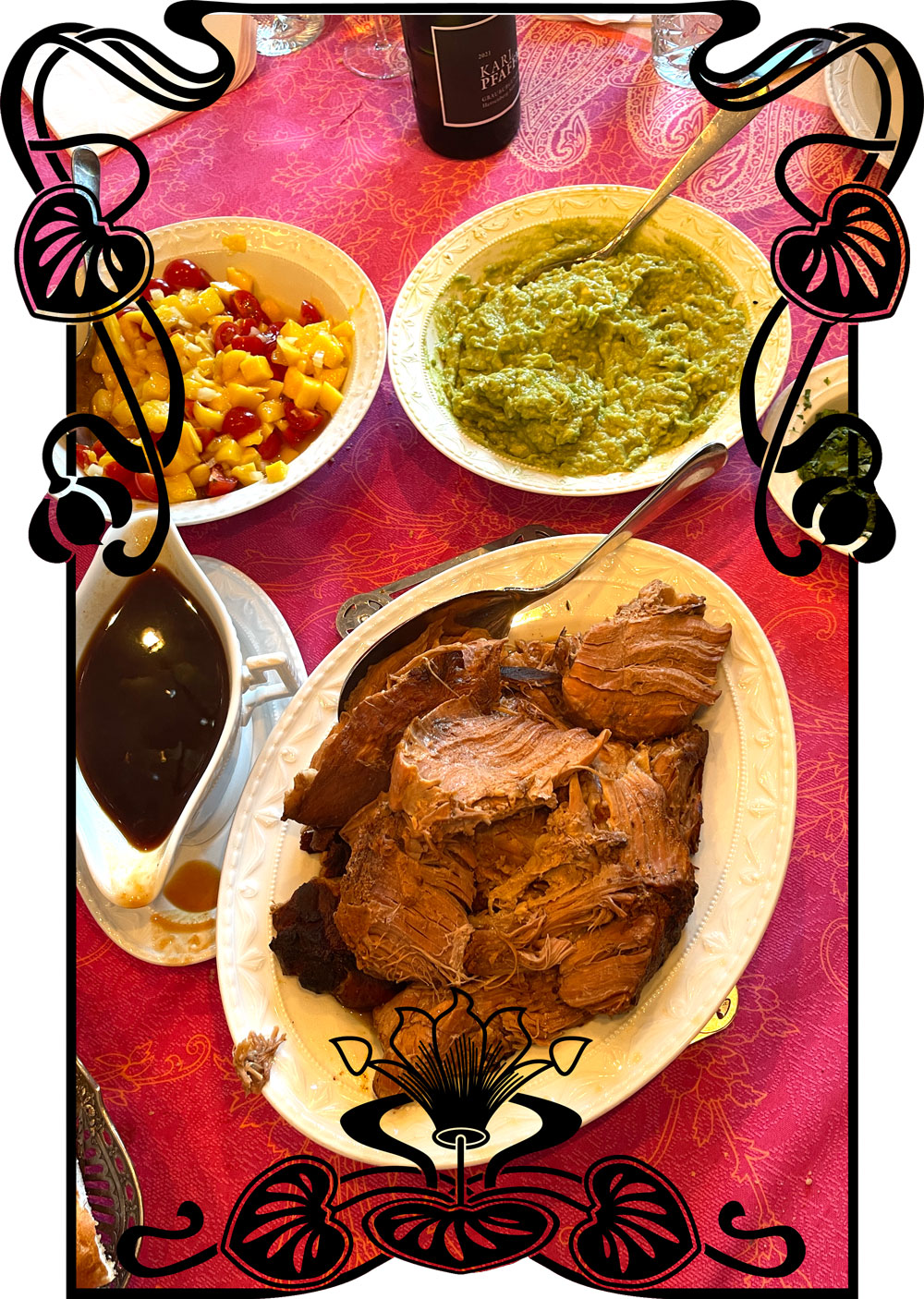 | pulled Pork mit Guacamole und Mango-Salsa |