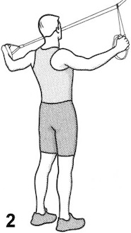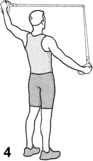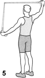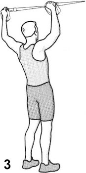 - Ausgangsposition 1 einnehmen. Den Körper aufrichten, dafür die gestreckten Arme jetzt nach oben führen. Der Körper bildet jetzt ein Y.